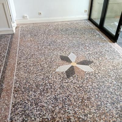 Terrazzo pour Résidentiel : Sublimez vos intérieurs avec un revêtement de sol élégant et intemporel. Nos créations en terrazzo granito sont idéales pour les cuisines, salles de bains, salons et escaliers, apportant une touche artistique à votre maison.